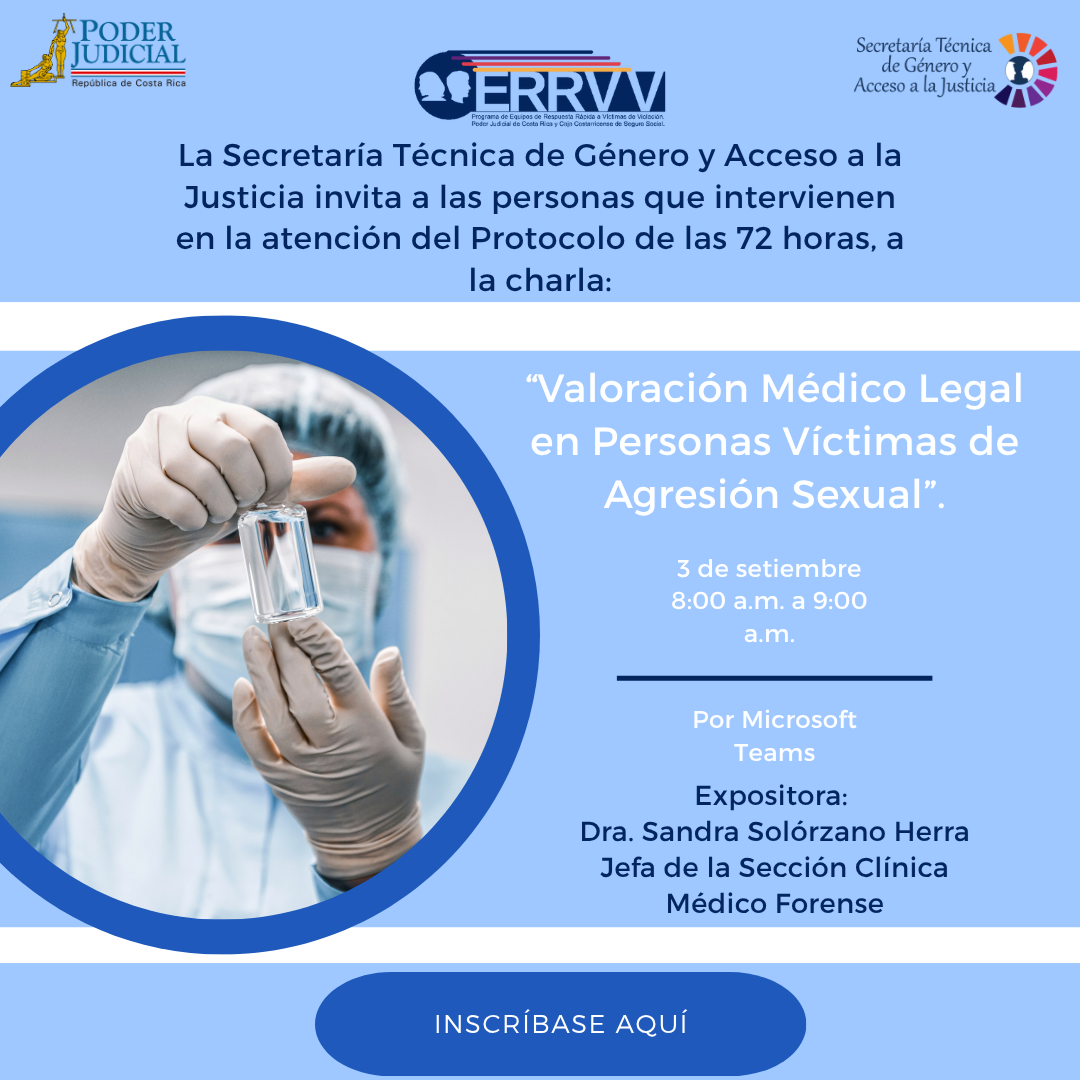 La Secretaría Técnica de Género y Acceso a la Justicia le invita a las personas que intervienen en la atención del Protocolo de las 72 horas, a la charla: