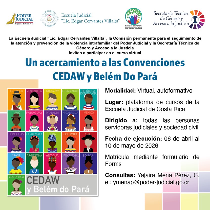 La Escuela Judicial Lic. Édgar Cervantes Villalta, la Comisión permanente para el seguimiento de la atención y prevención de la violencia intrafamiliar del Poder Judicial y la Secretaría Técnica de Género y Acceso a la Justicia