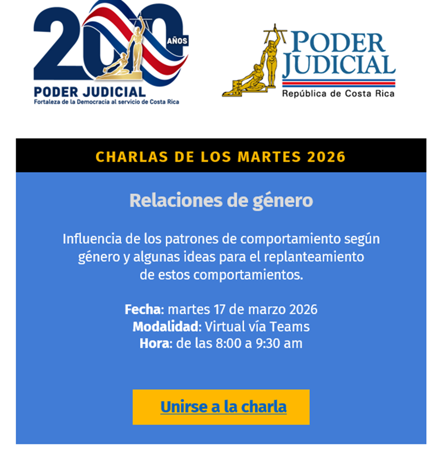 Charla: Relaciones de género. Martes 17 de marzo de 8:00 a 9:30 am.